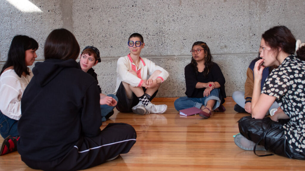 Nos juntamos 8 mujeres de entre 18 y 24 años, estudiantas de primer a último semestre y egresadas de las dos escuelas de teatro de la UNAM: el CUT y el Colegio (CLDyT). Hicimos un ejercicio en dos momentos que busca visibilizar la relación que tenemos con nosotras mismas (con o desde el teatro) e identificar cómo esta se ha transformado a lo largo de la carrera. Este proyecto busca el encuentro entre escuelas, visibilizar la experiencia de ser mujer y estudiar teatro/actuación y ser una especie de collage de palabras.